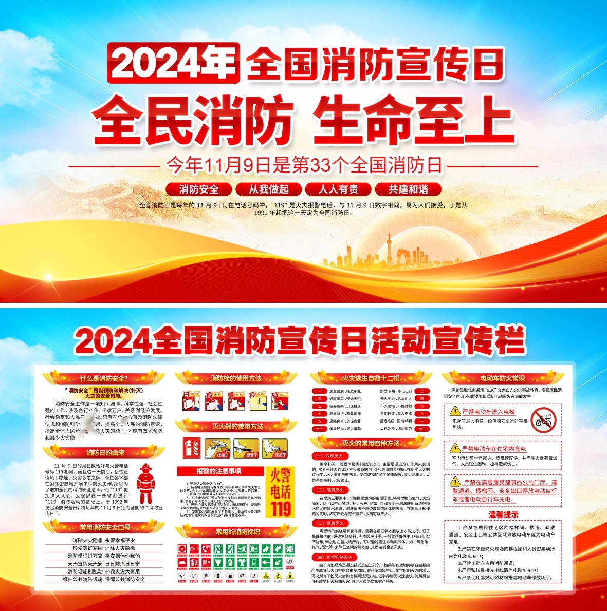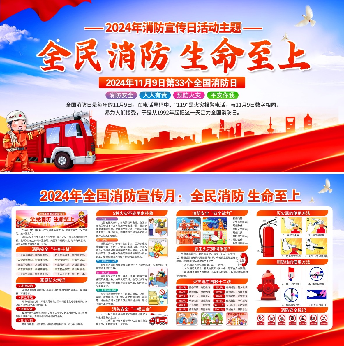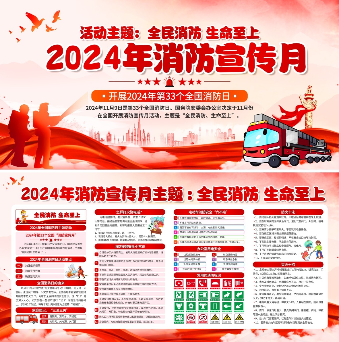 2024年消防月海报,活动展板海报挂图宣传栏折页