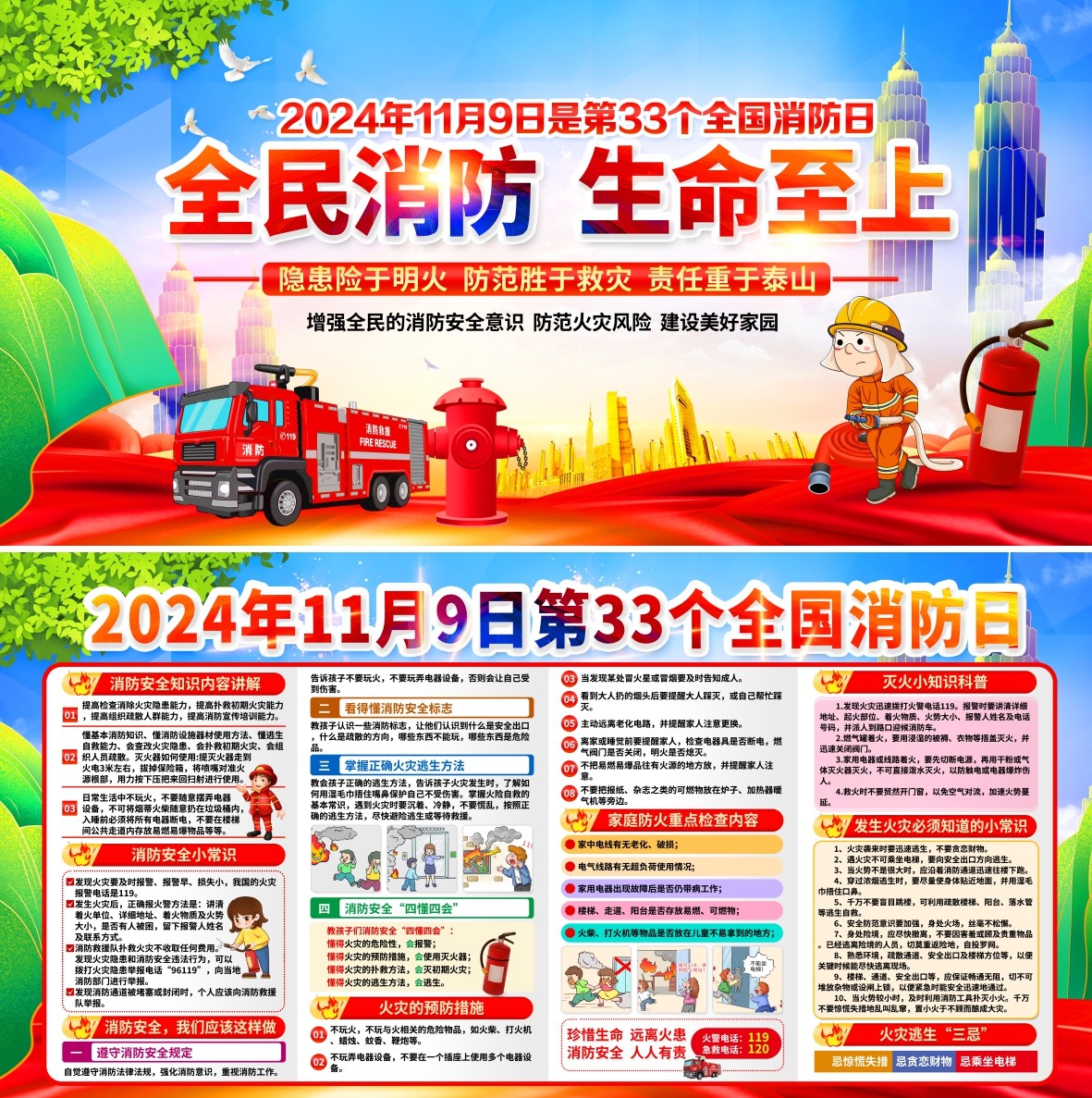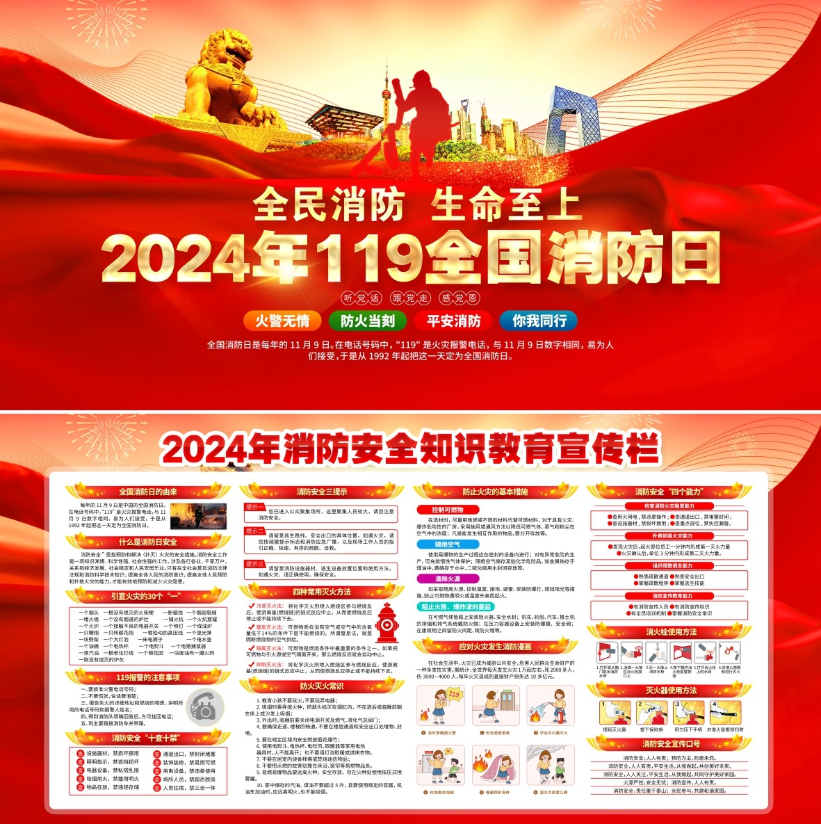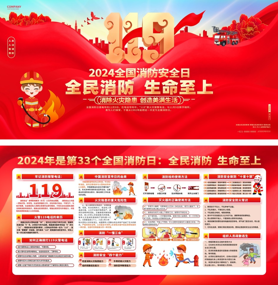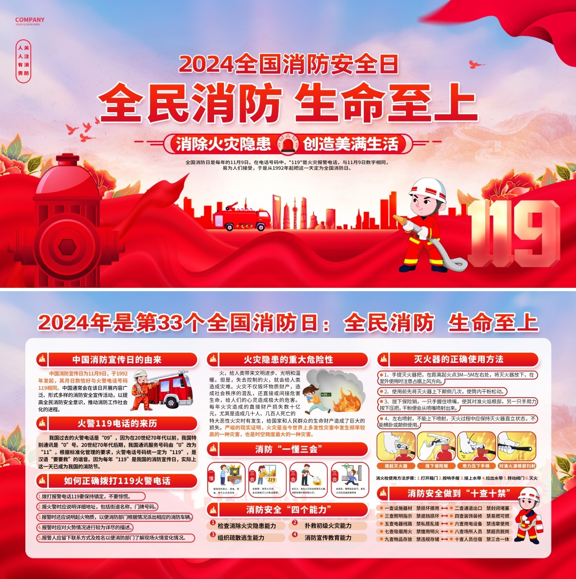 2024年消防月海报,活动展板海报挂图宣传栏折页