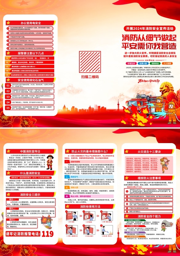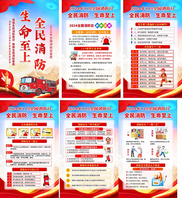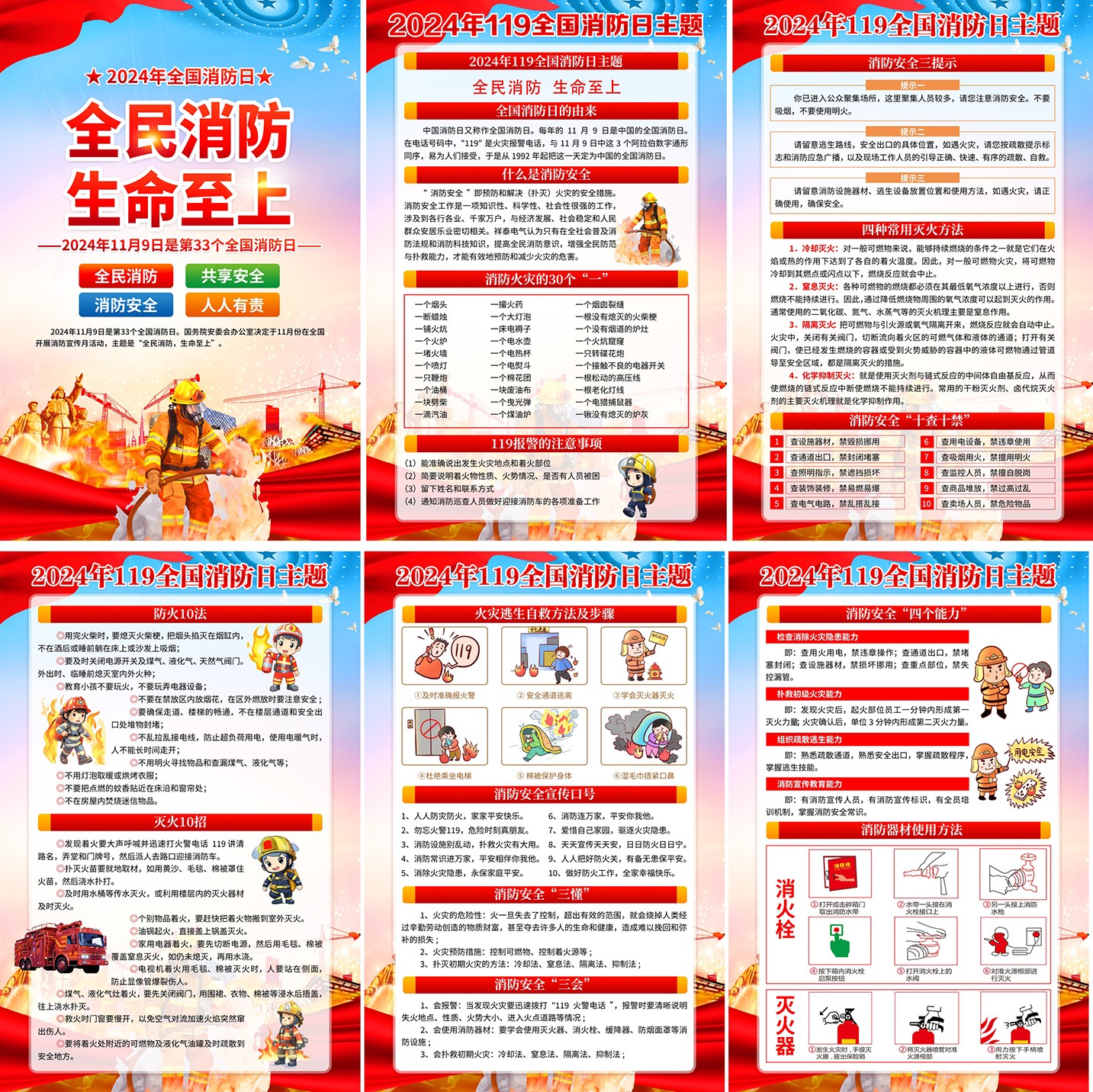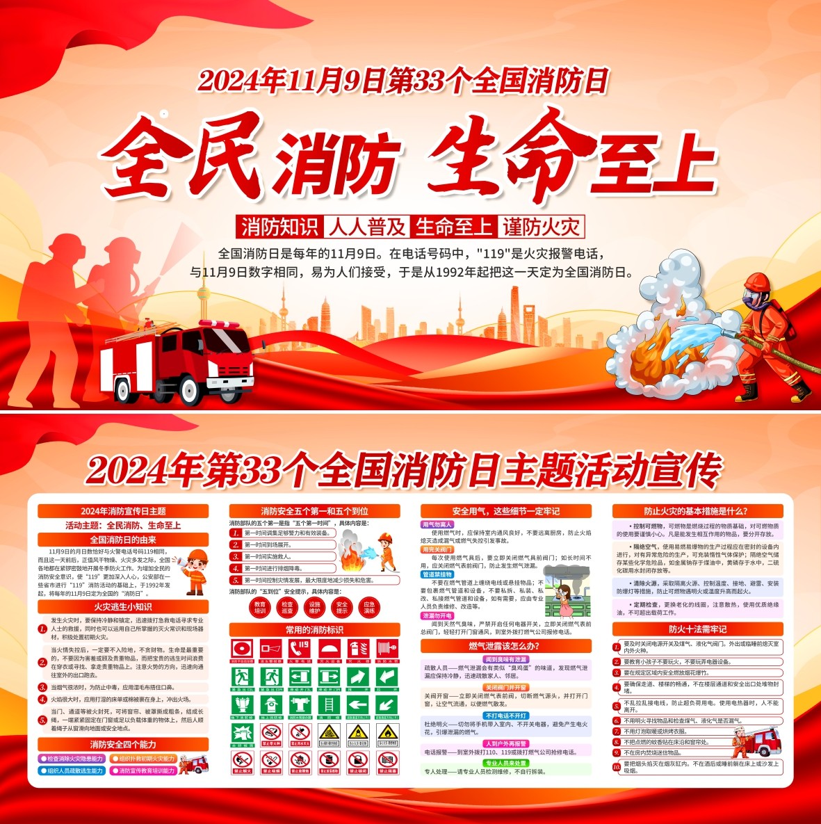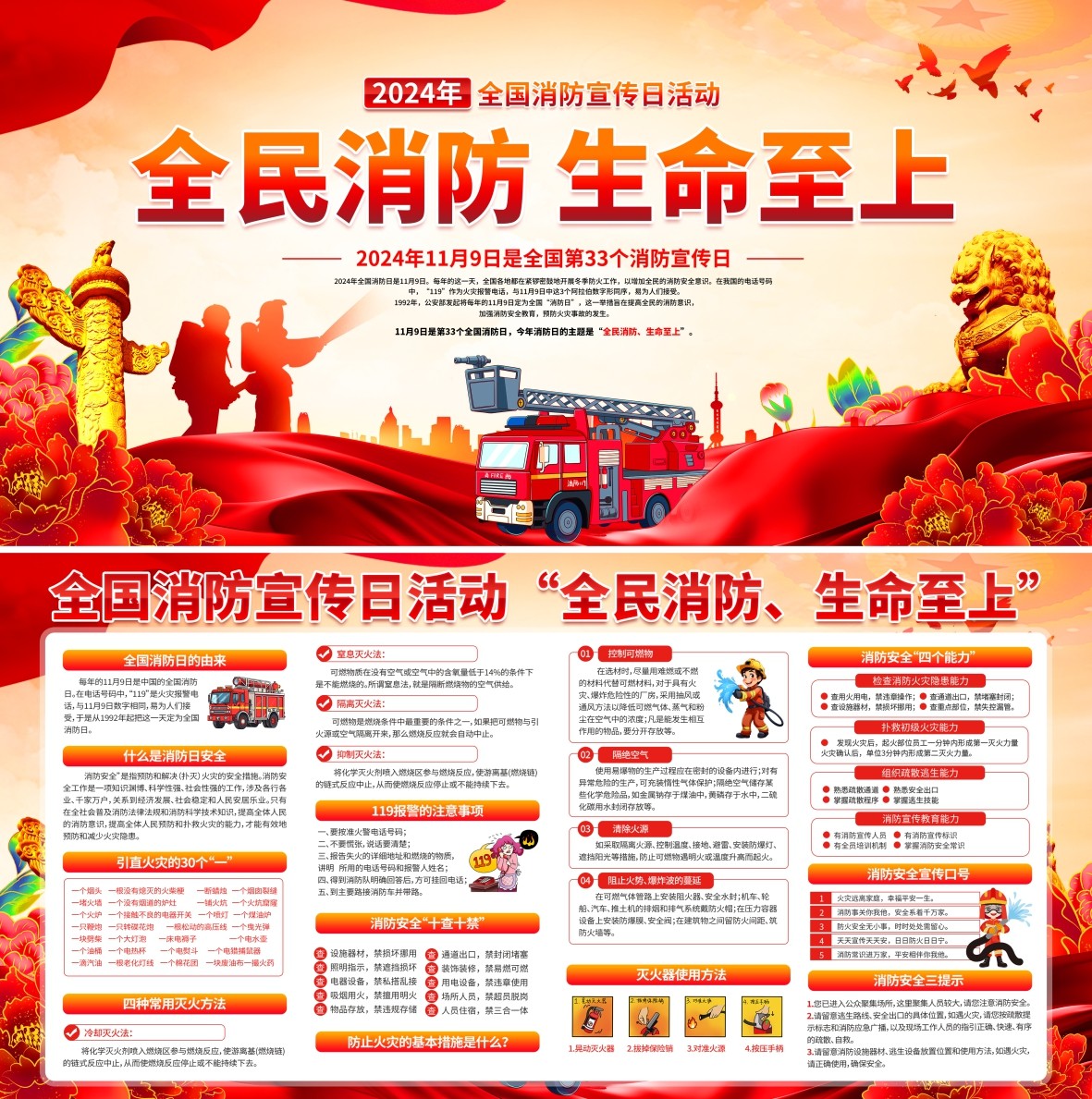 2024年消防月海报,活动展板海报挂图宣传栏折页