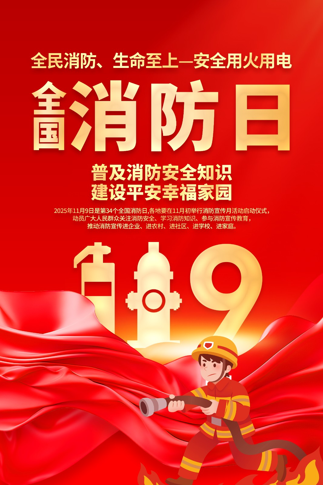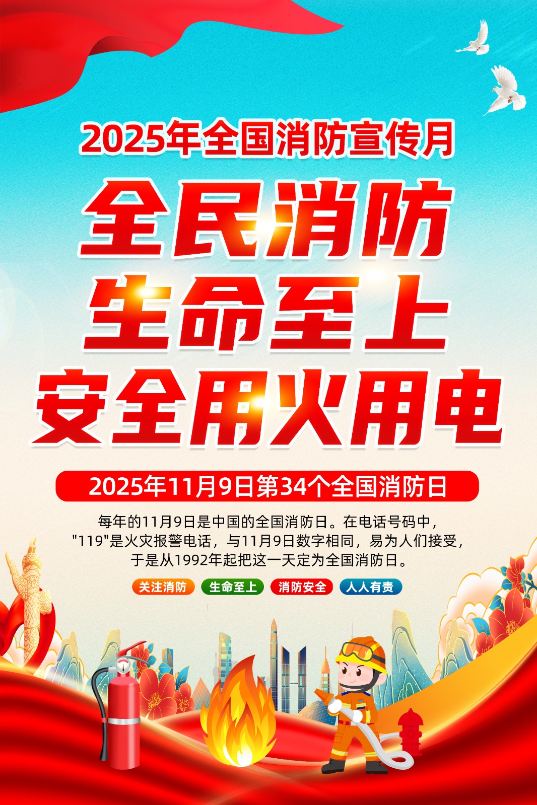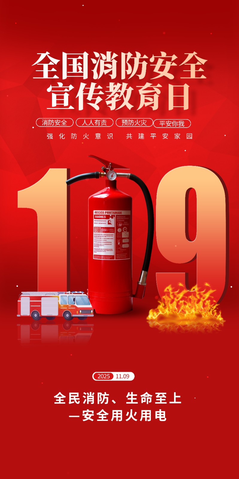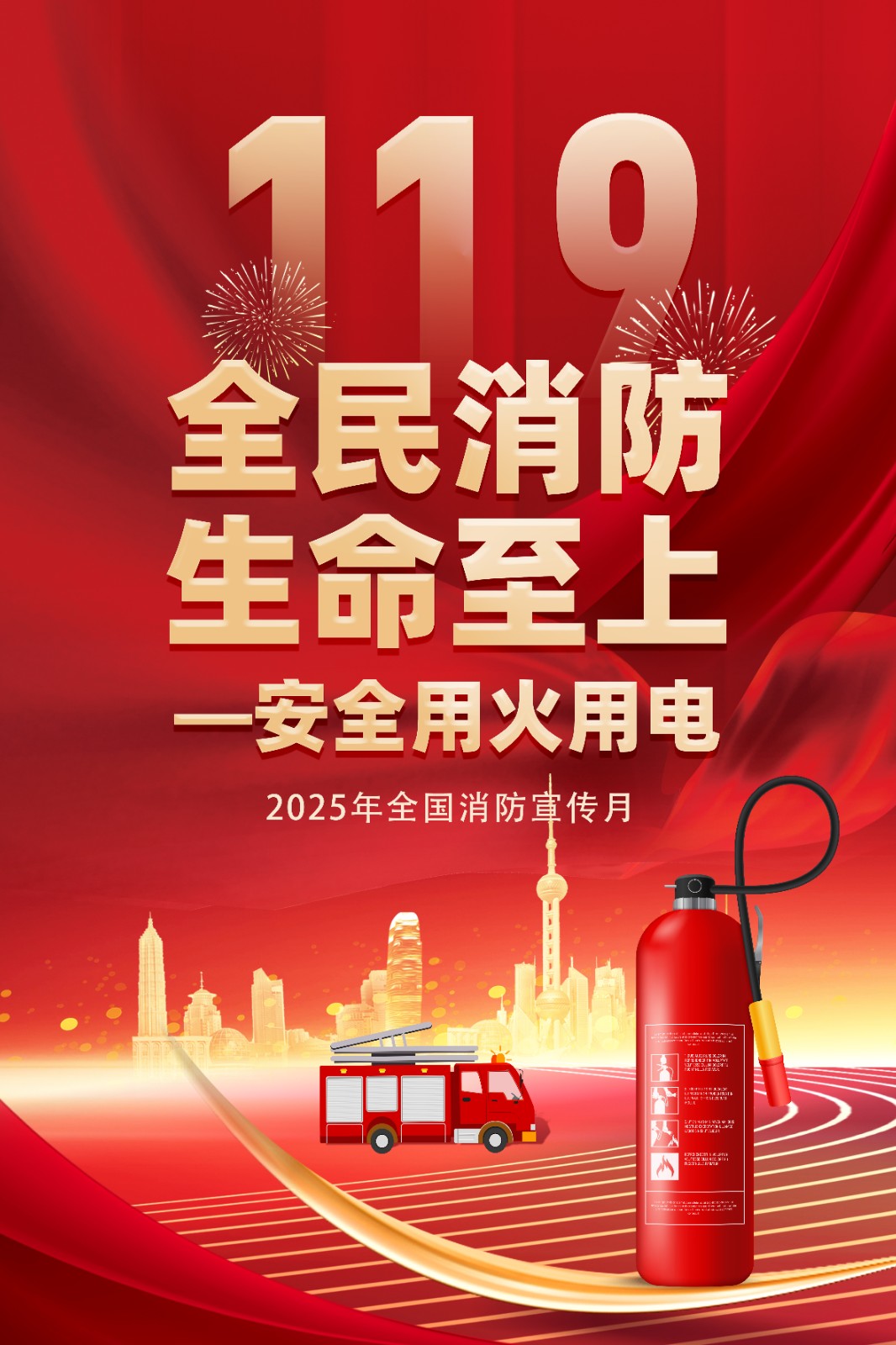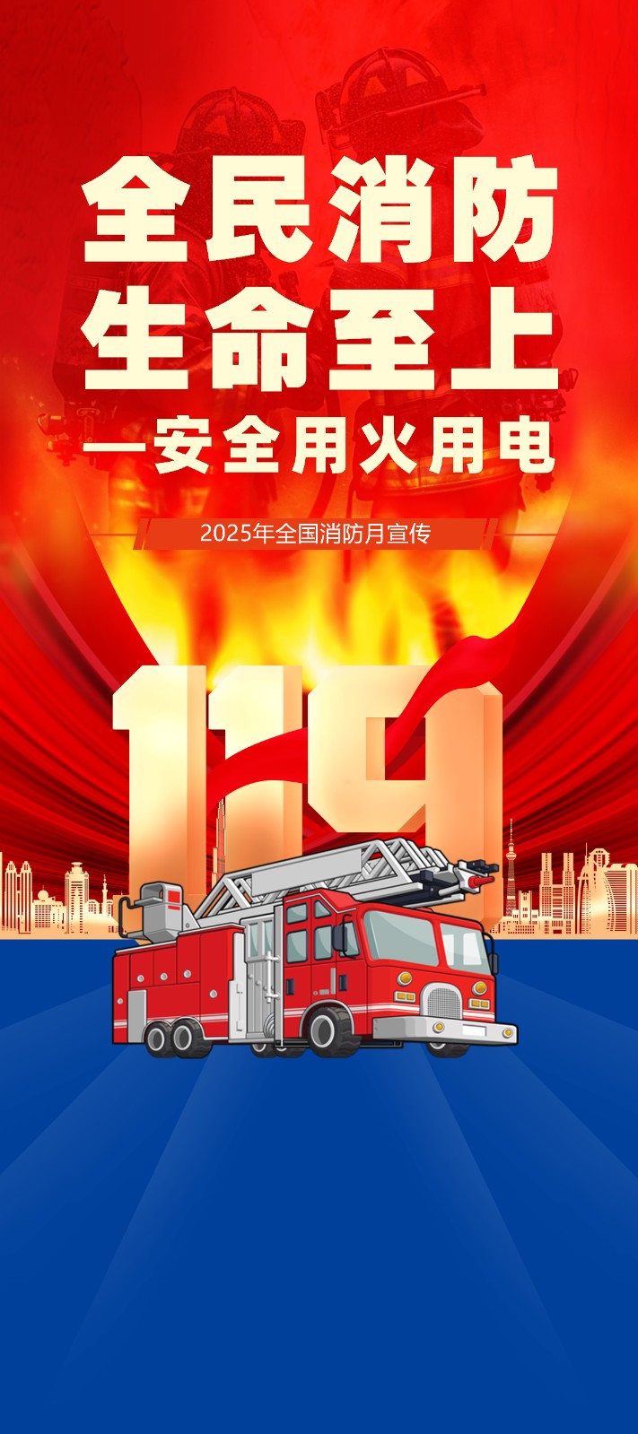 2025年消防宣传月主题海报119消防日教育海报 【高清图+PSD原版文件】