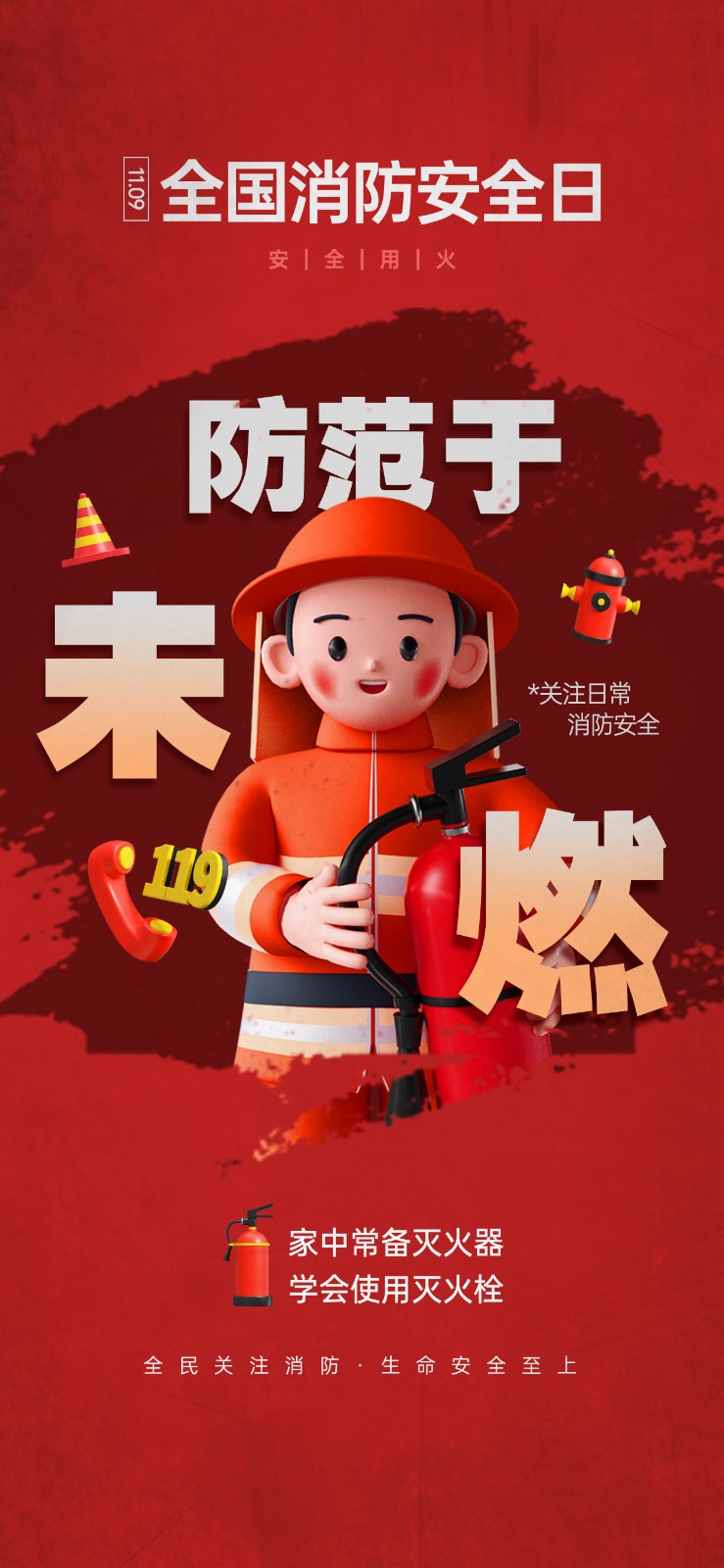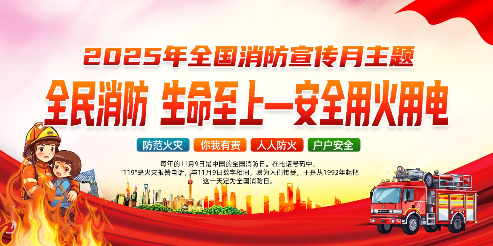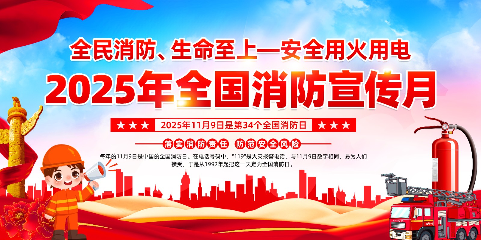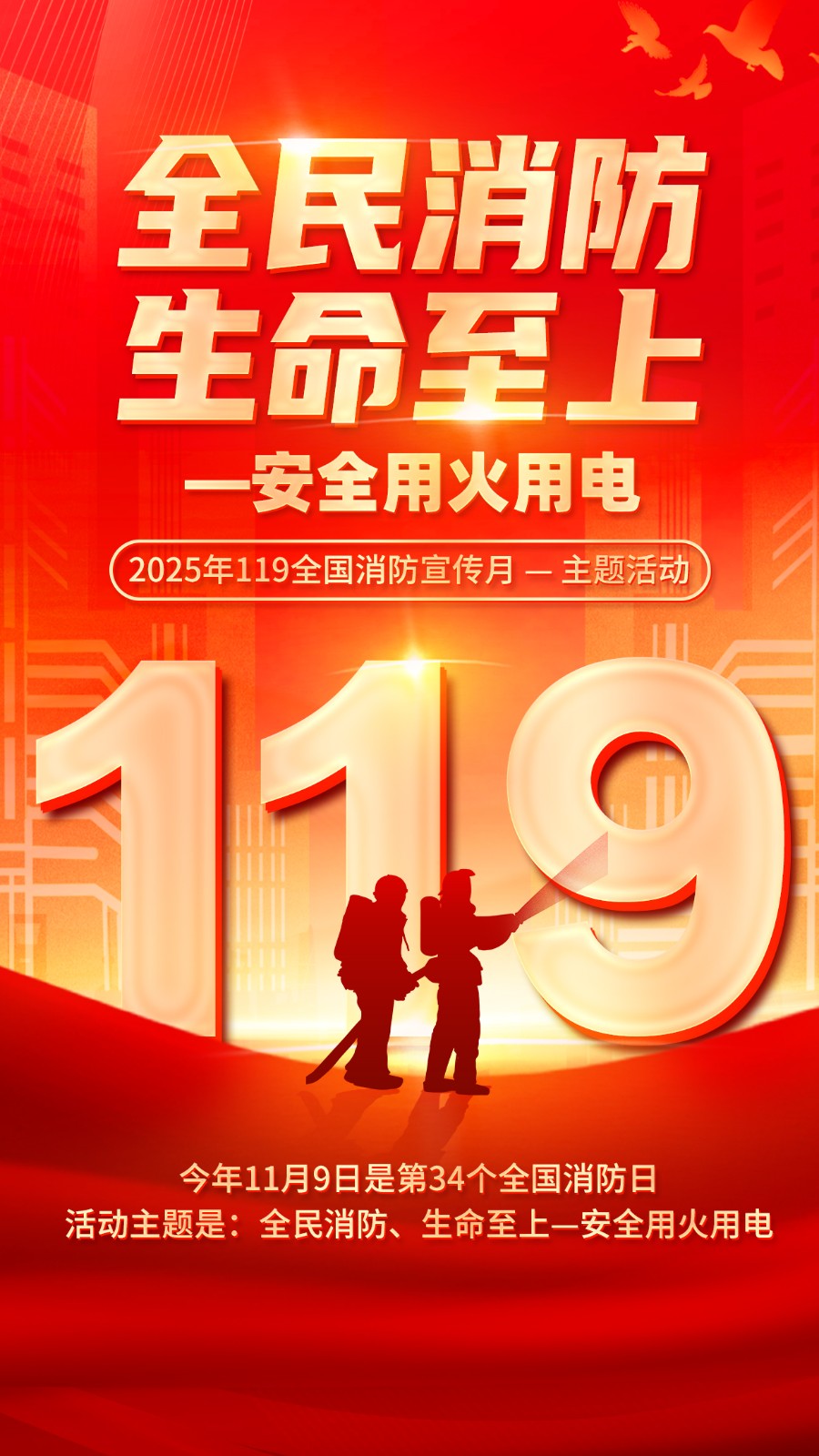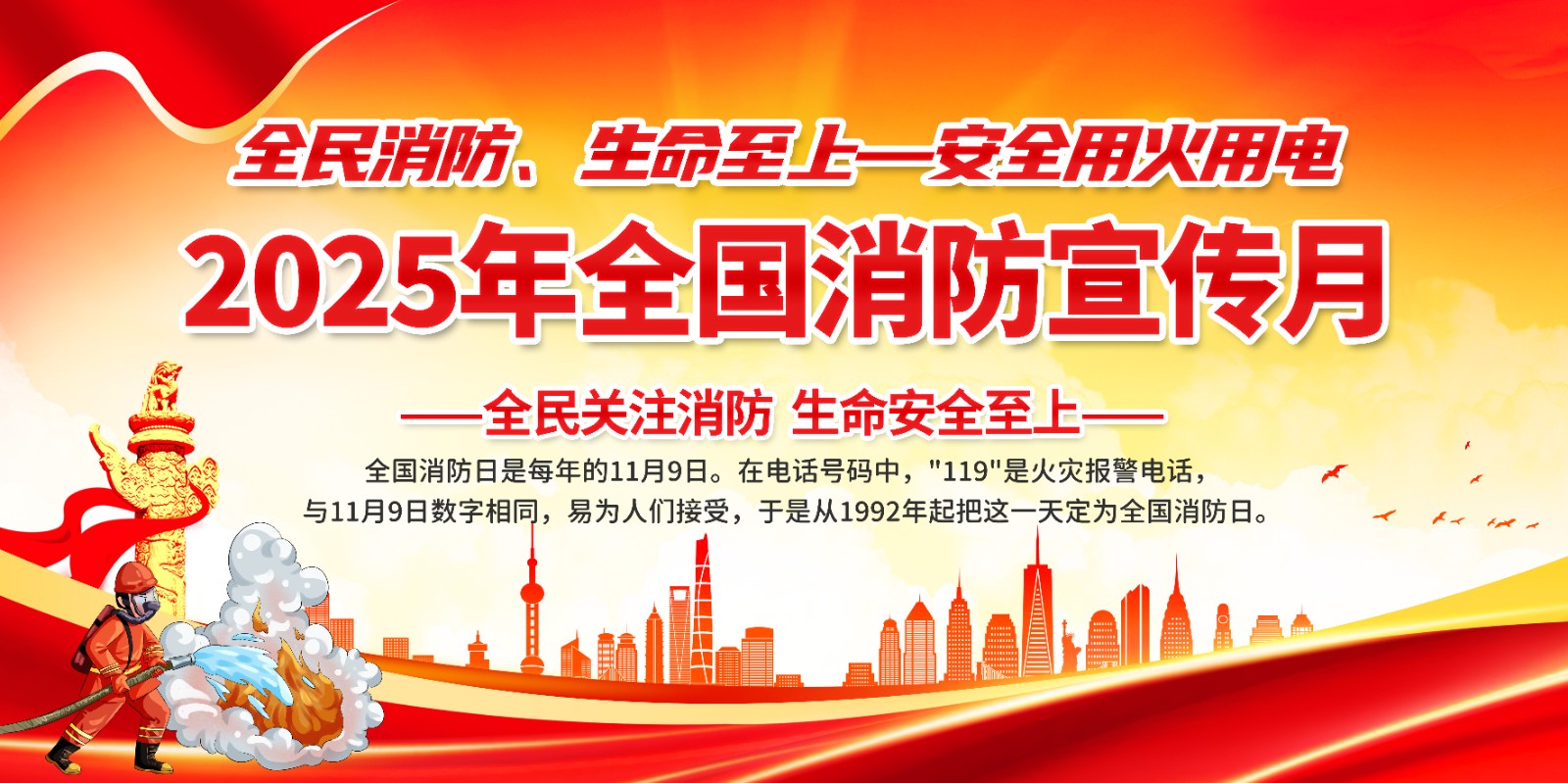 2025年消防宣传月主题海报119消防日教育海报 【高清图+PSD原版文件】