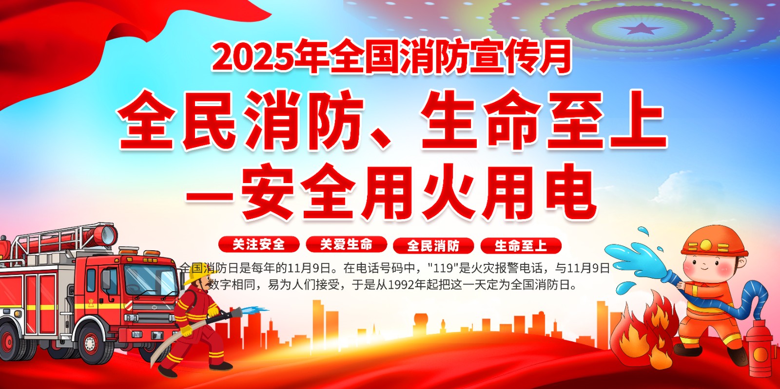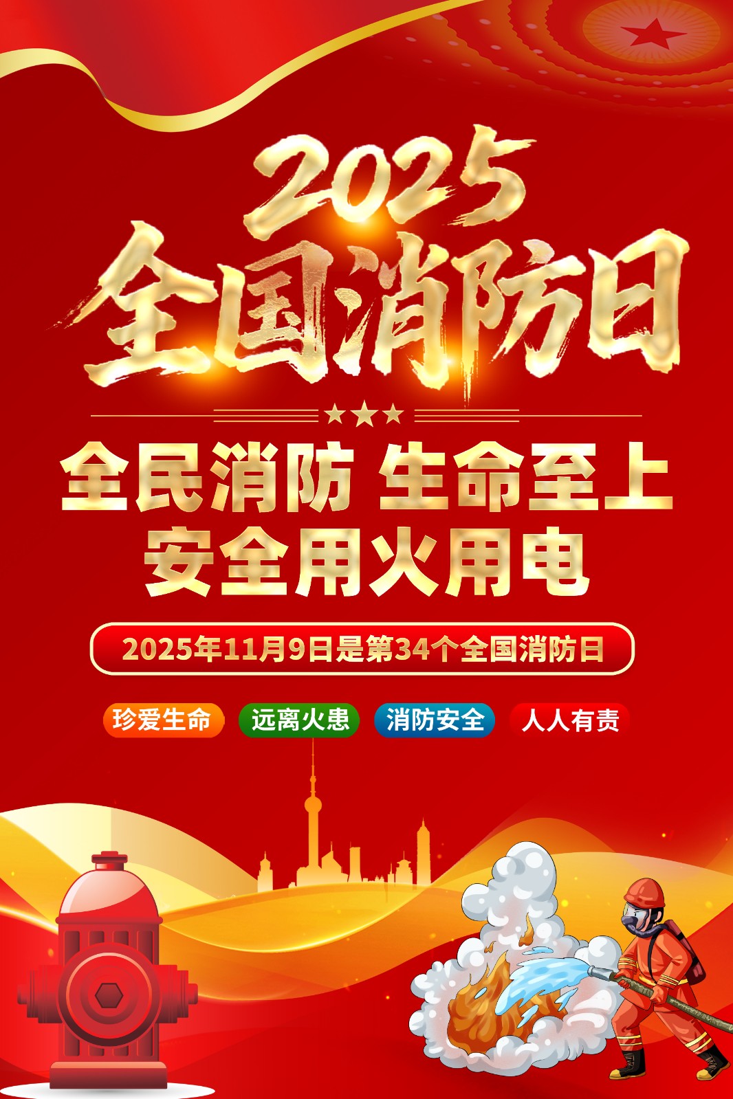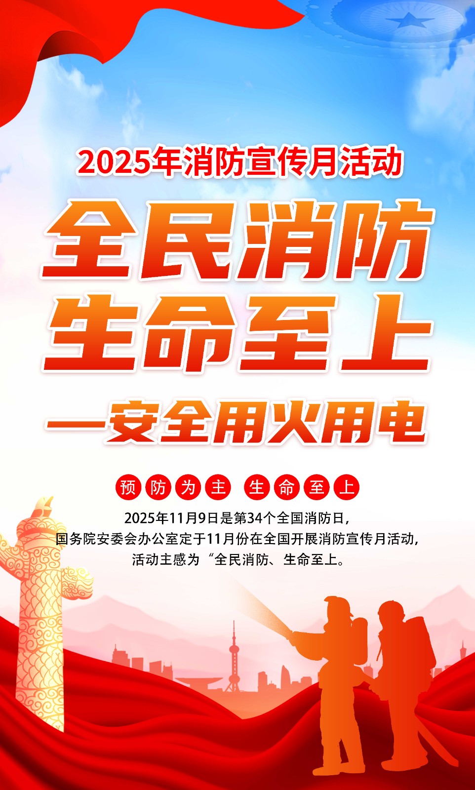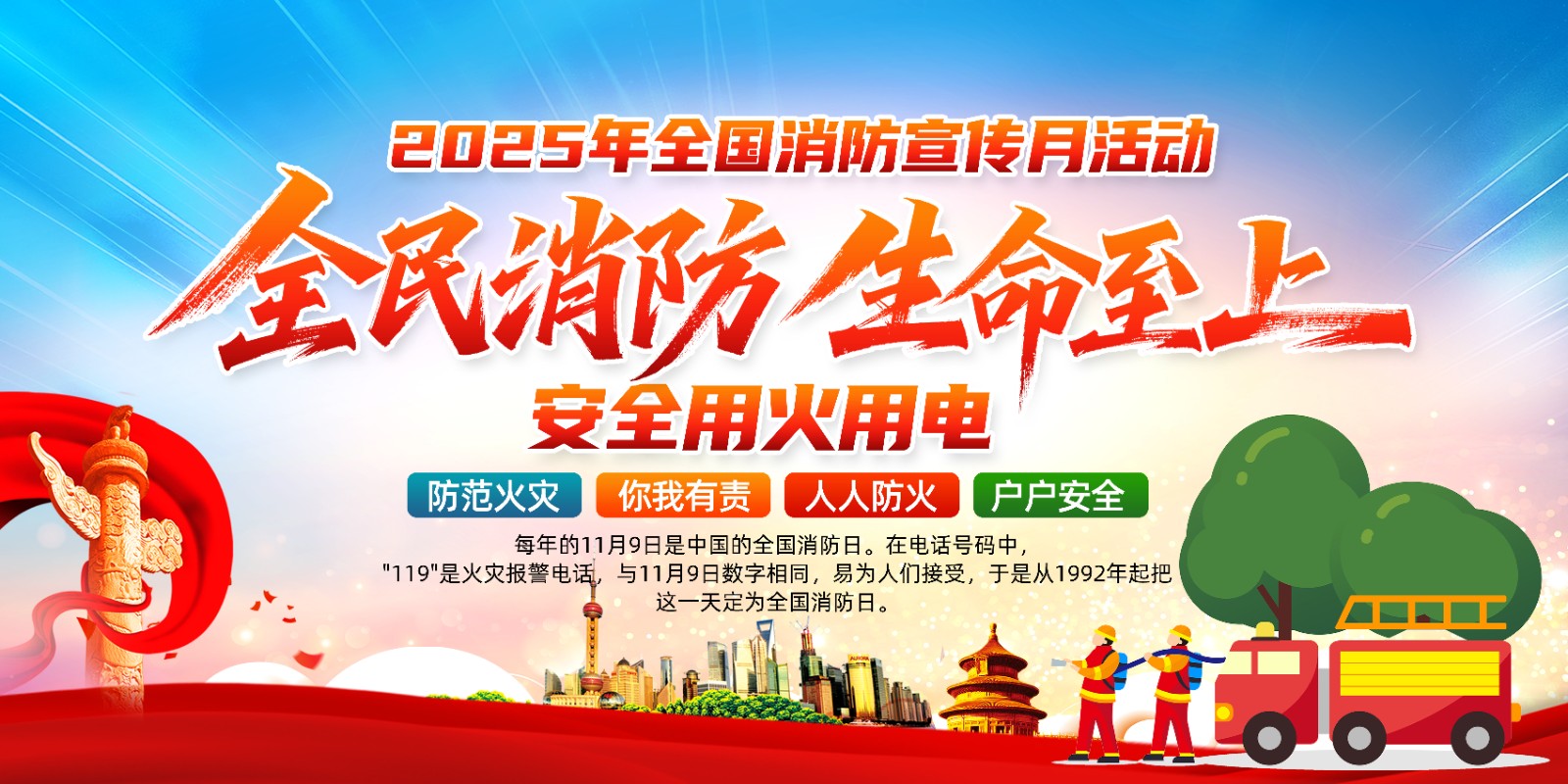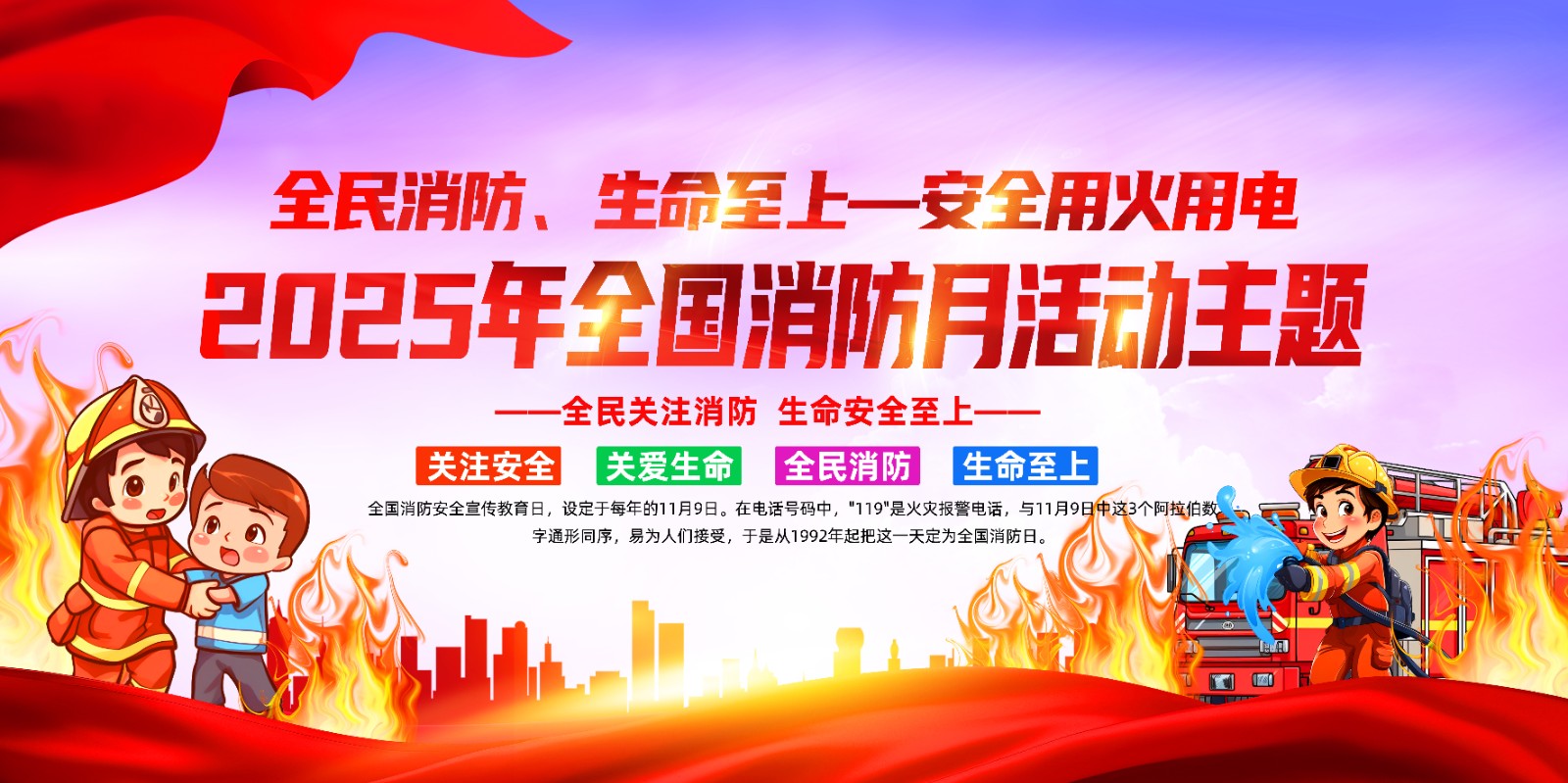 2025年消防宣传月主题海报119消防日教育海报 【高清图+PSD原版文件】