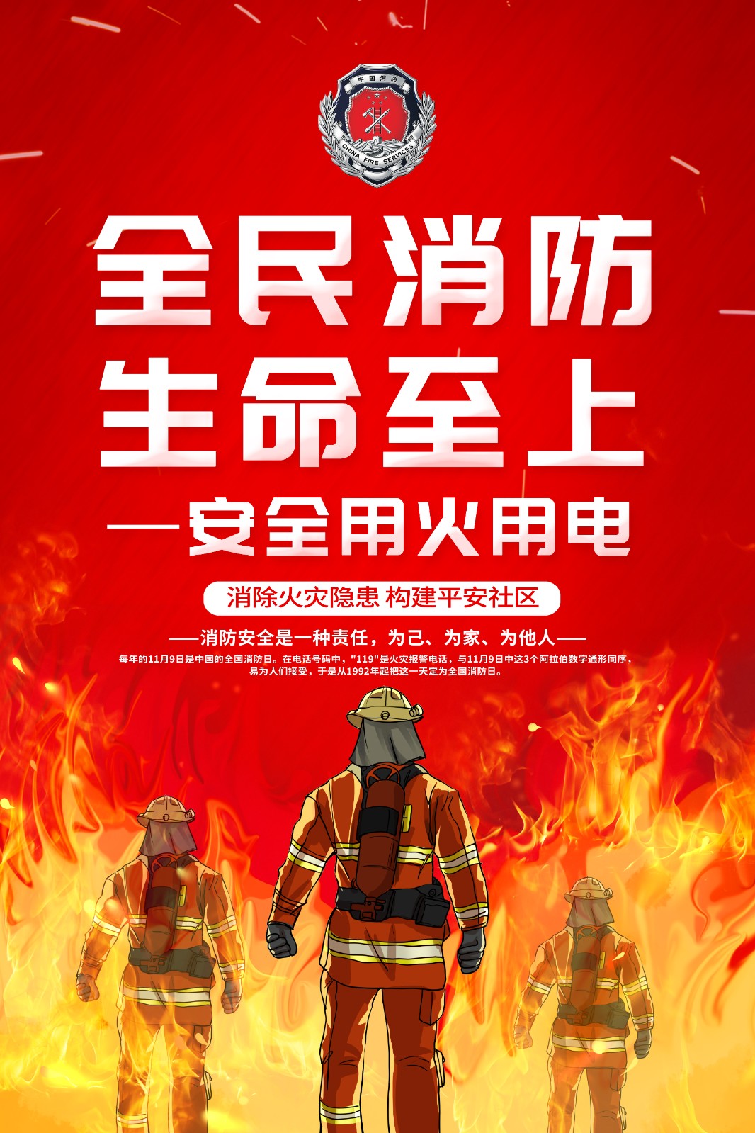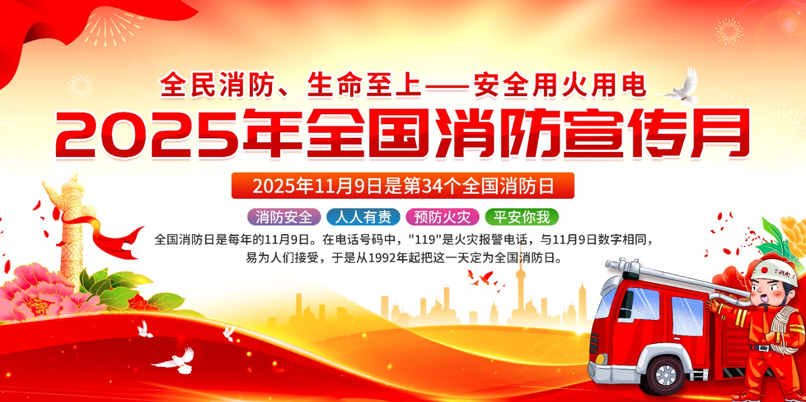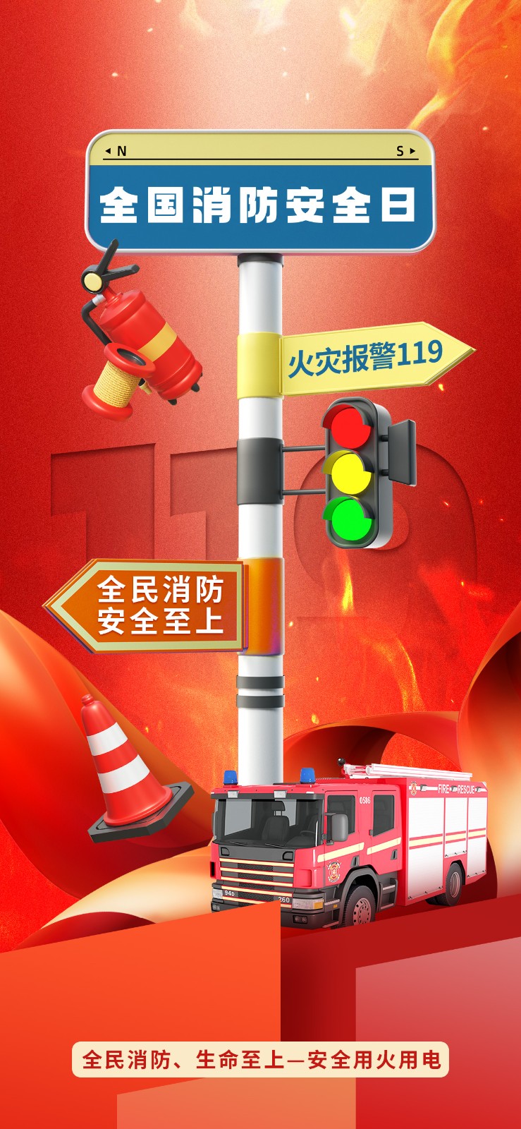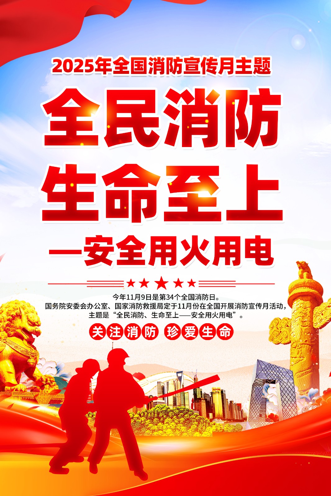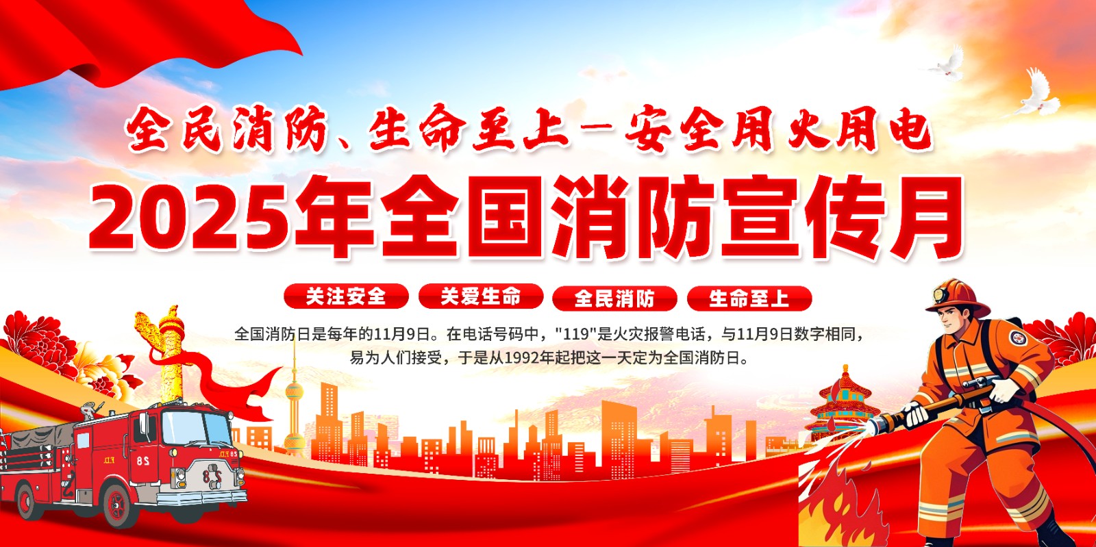 2025年消防宣传月主题海报119消防日教育海报 【高清图+PSD原版文件】