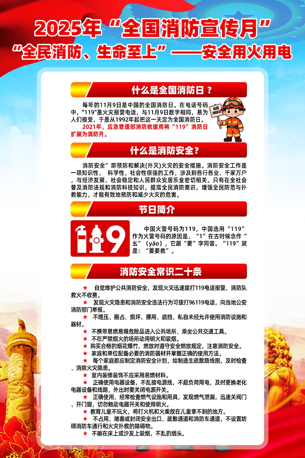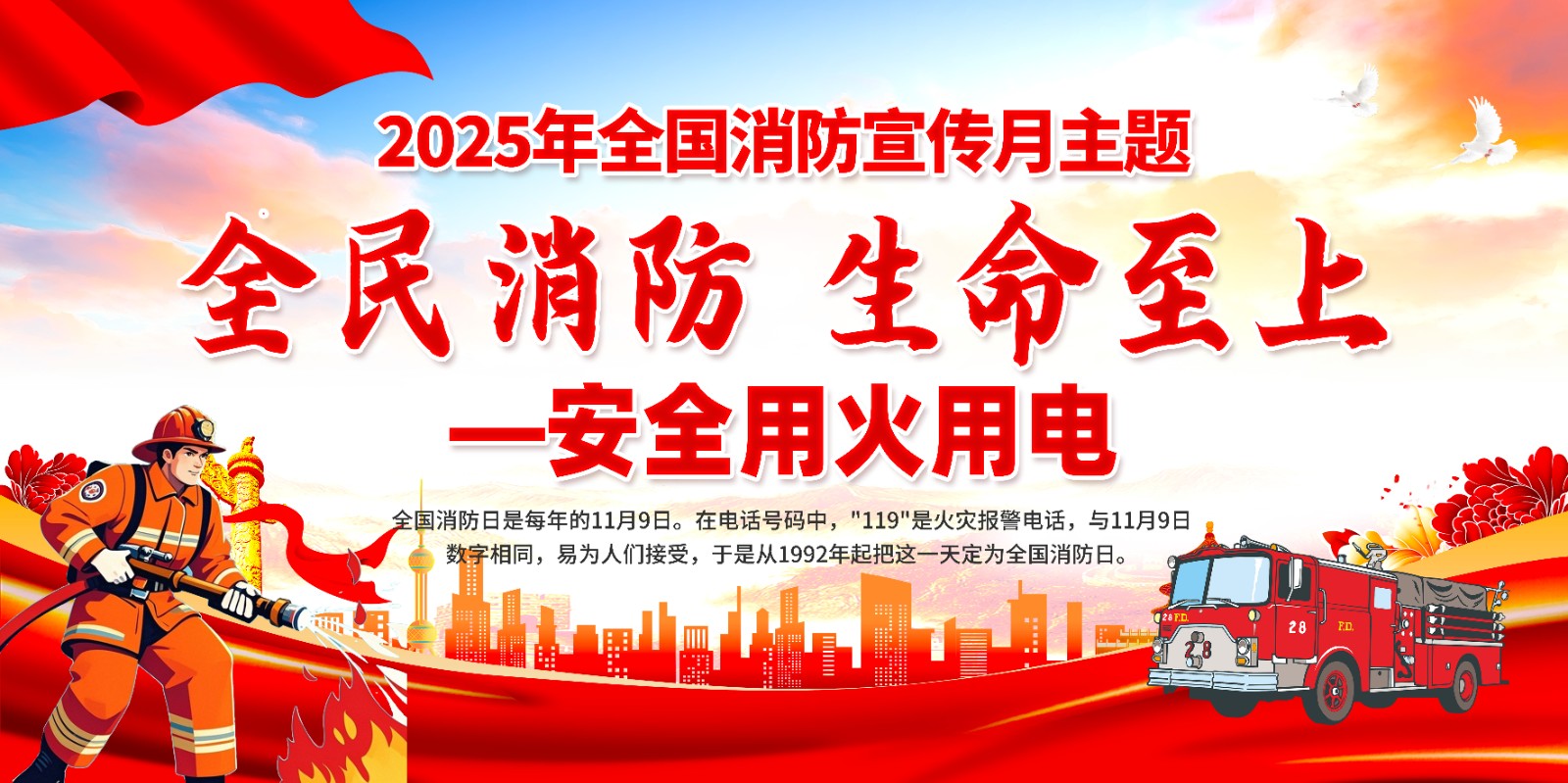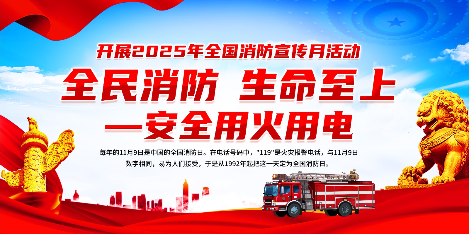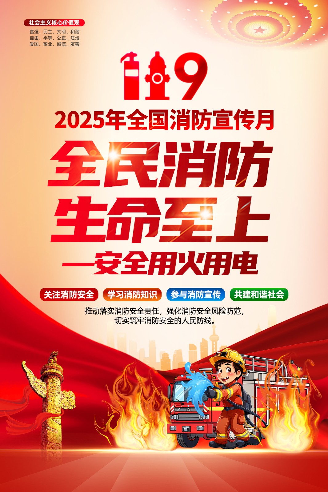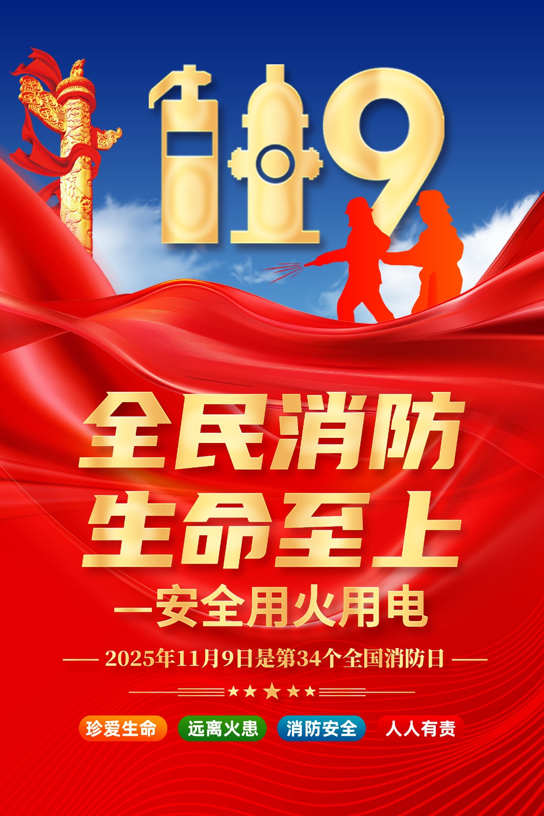 2025年消防宣传月主题海报119消防日教育海报 【高清图+PSD原版文件】