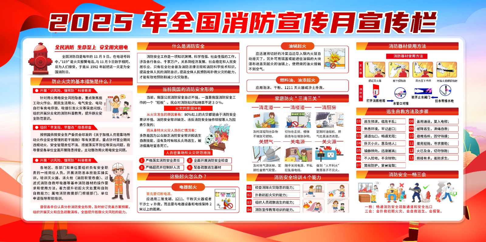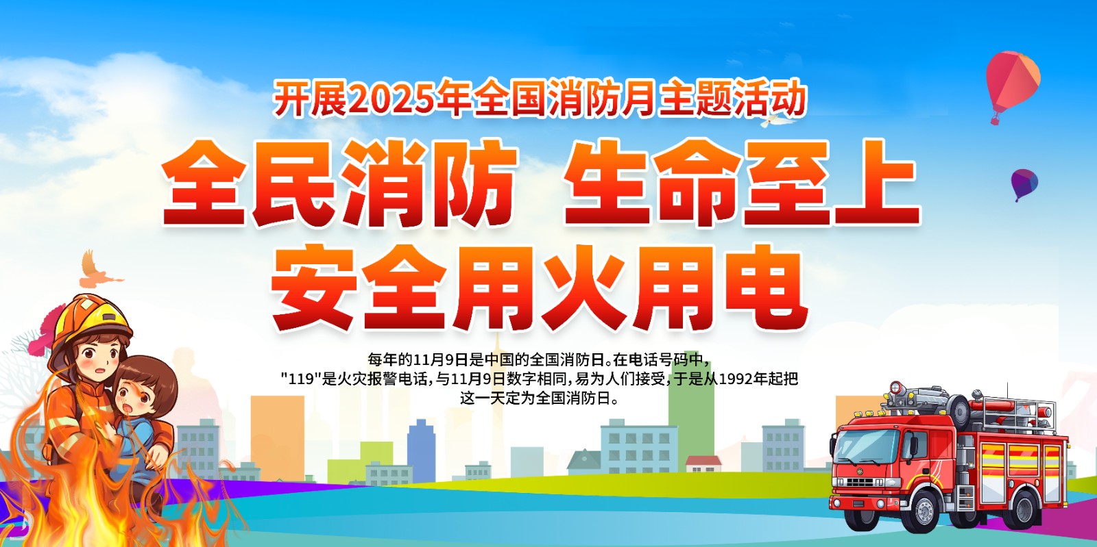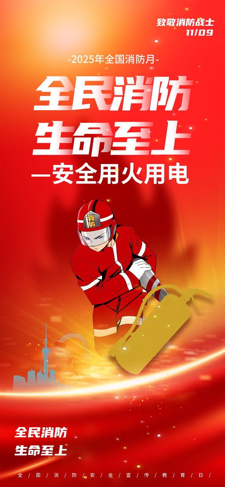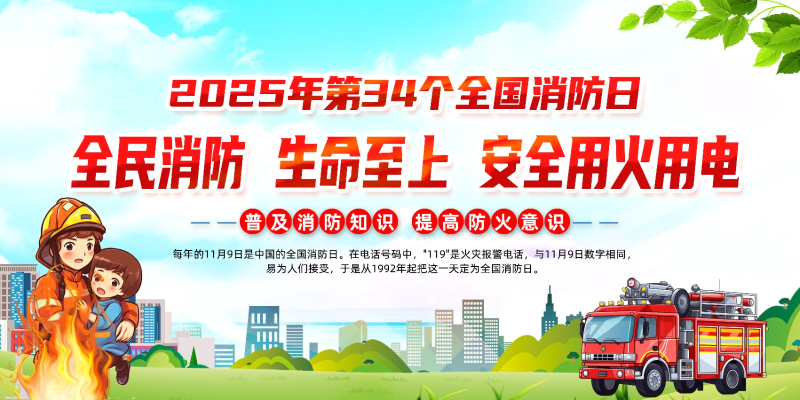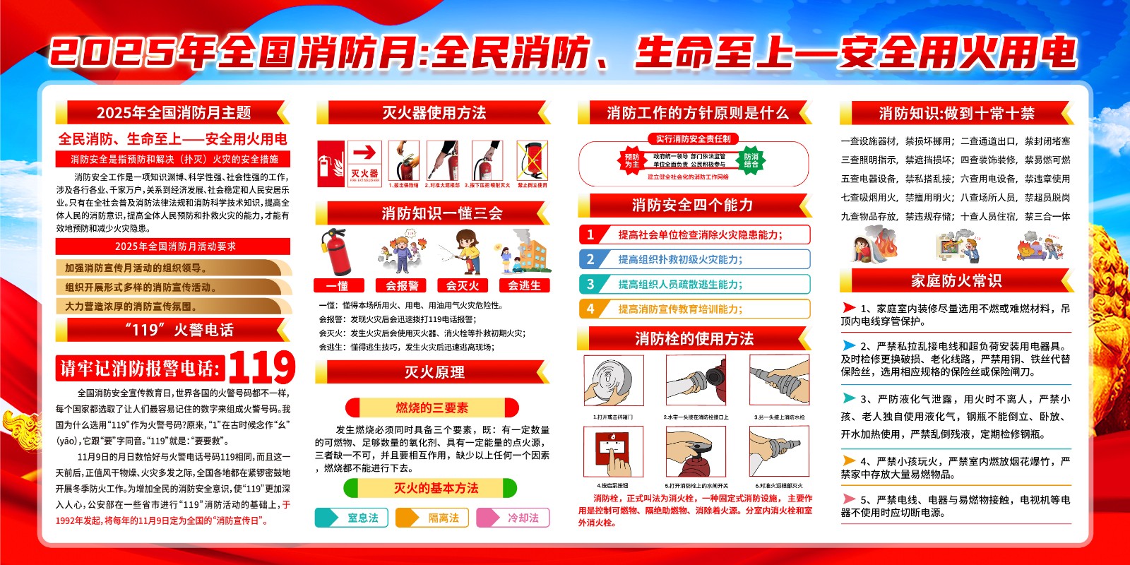 2025年消防宣传月主题海报119消防日教育海报 【高清图+PSD原版文件】