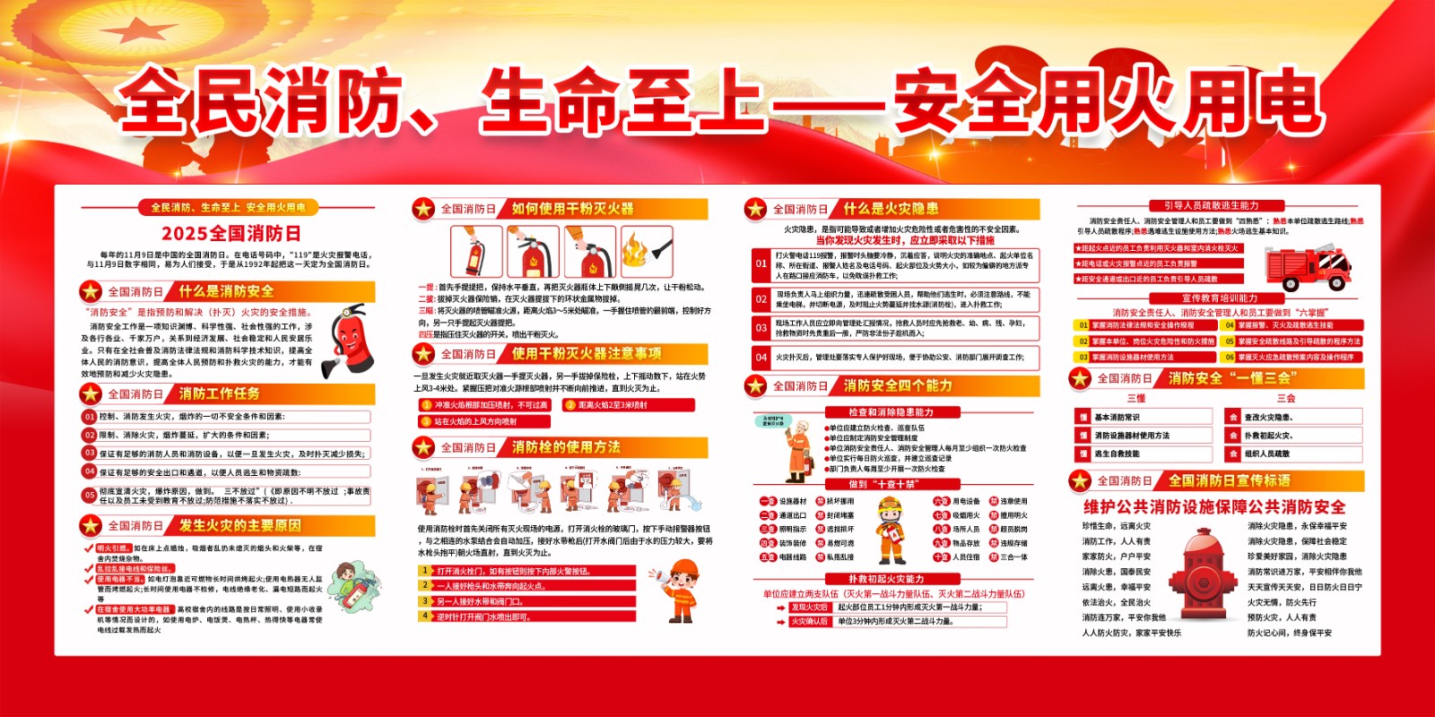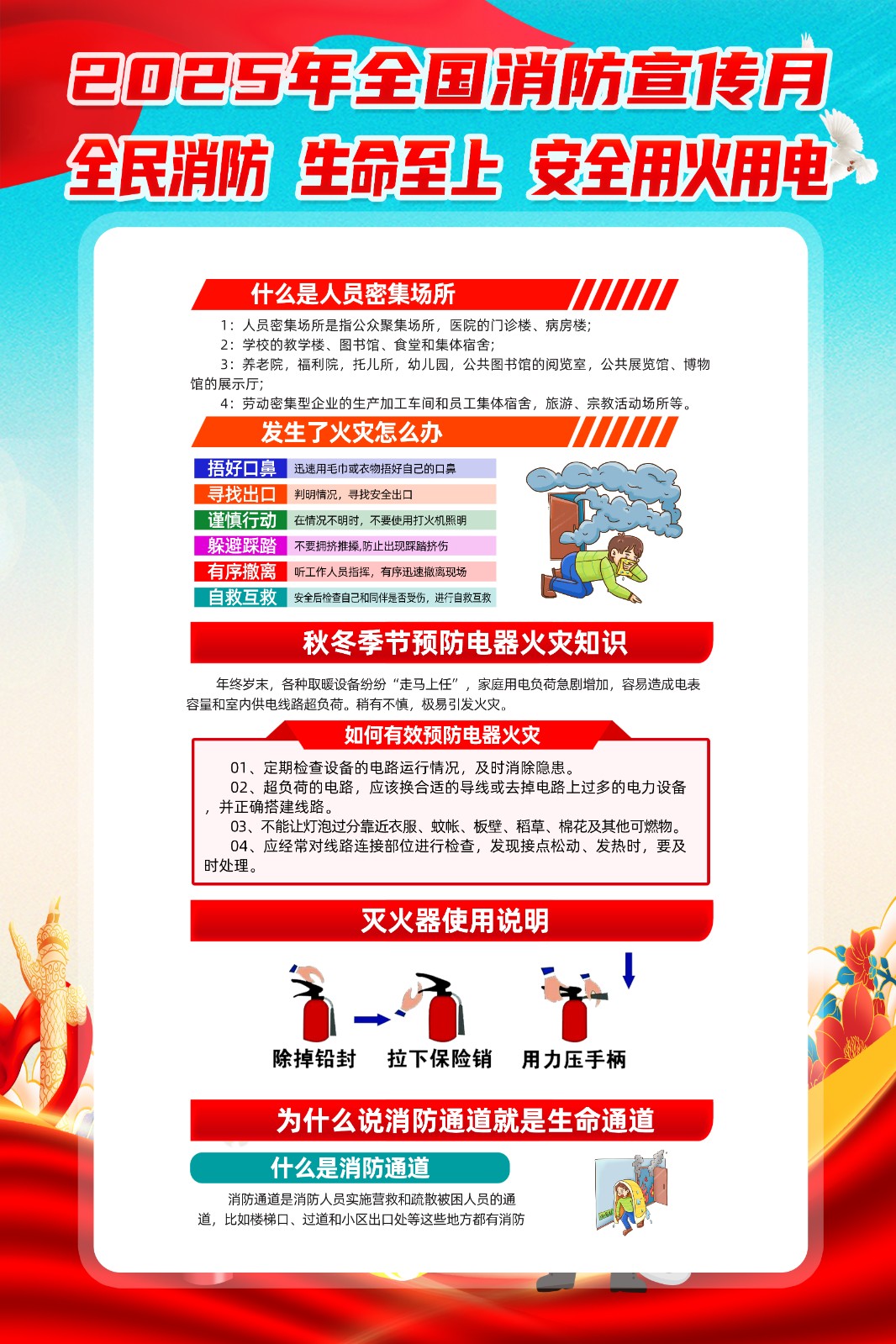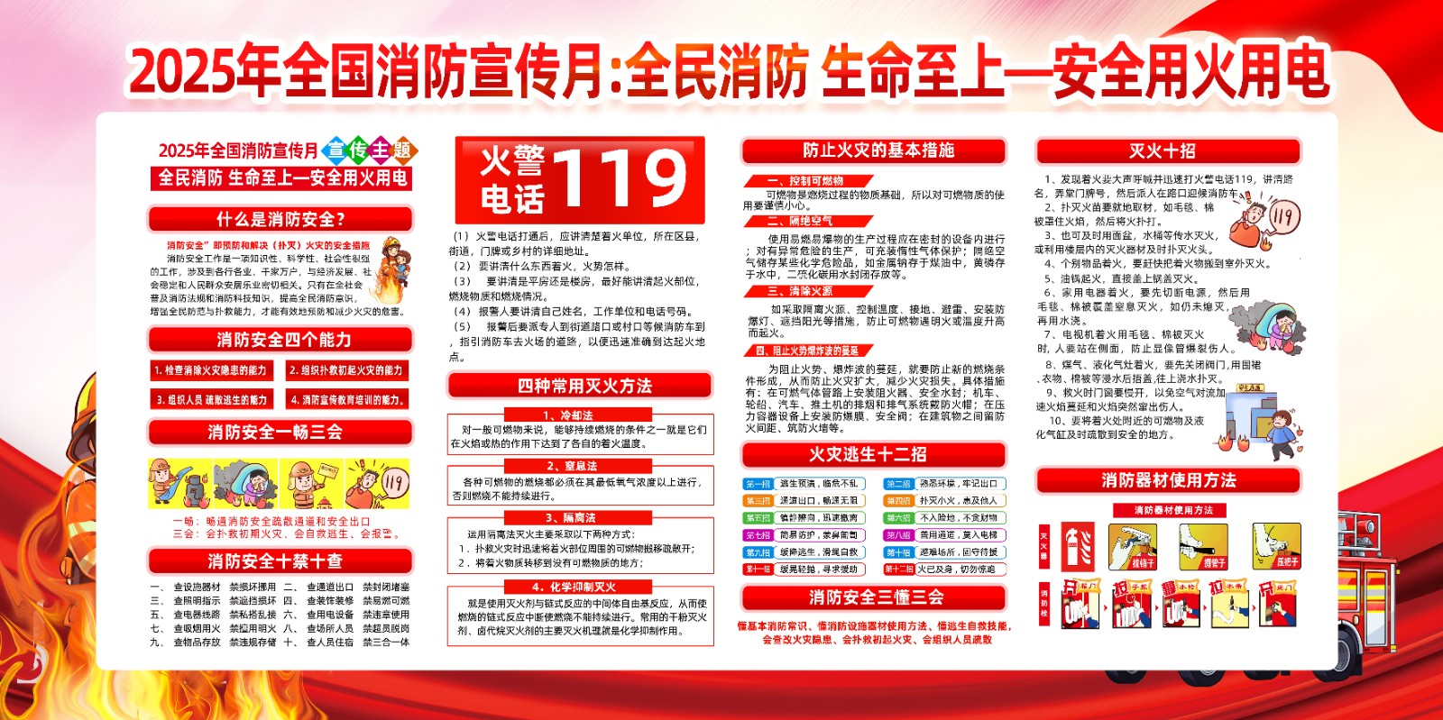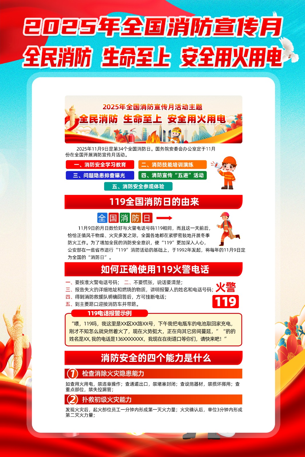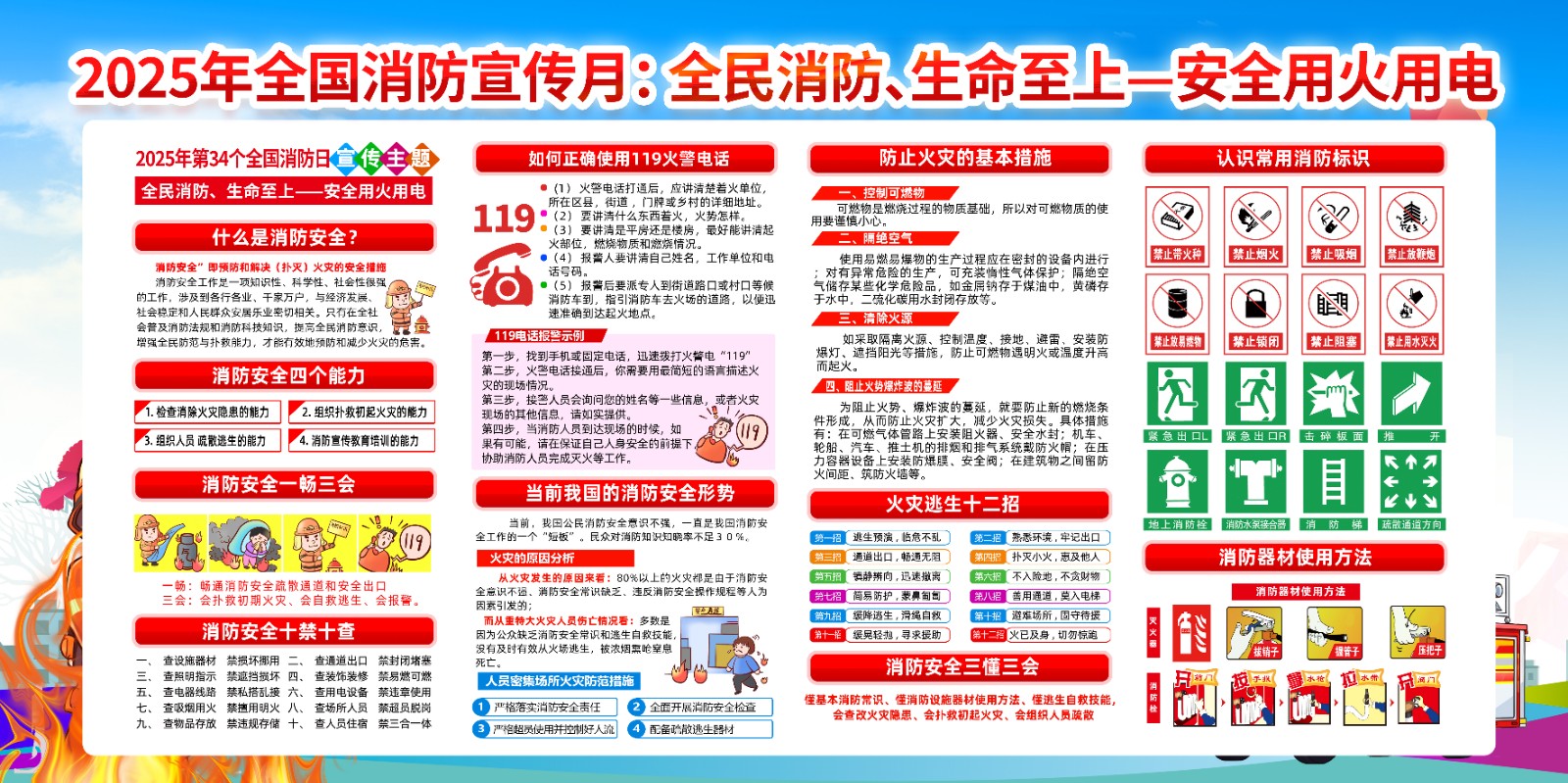 2025年消防宣传月主题海报119消防日教育海报 【高清图+PSD原版文件】