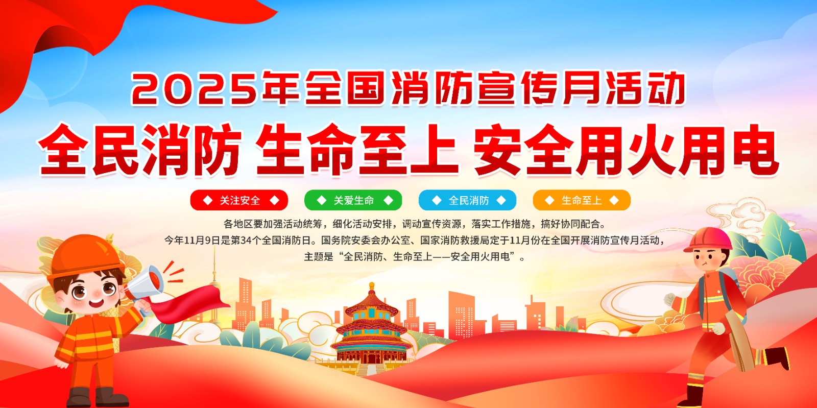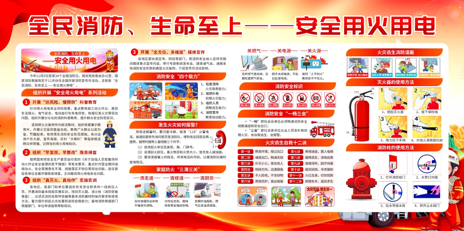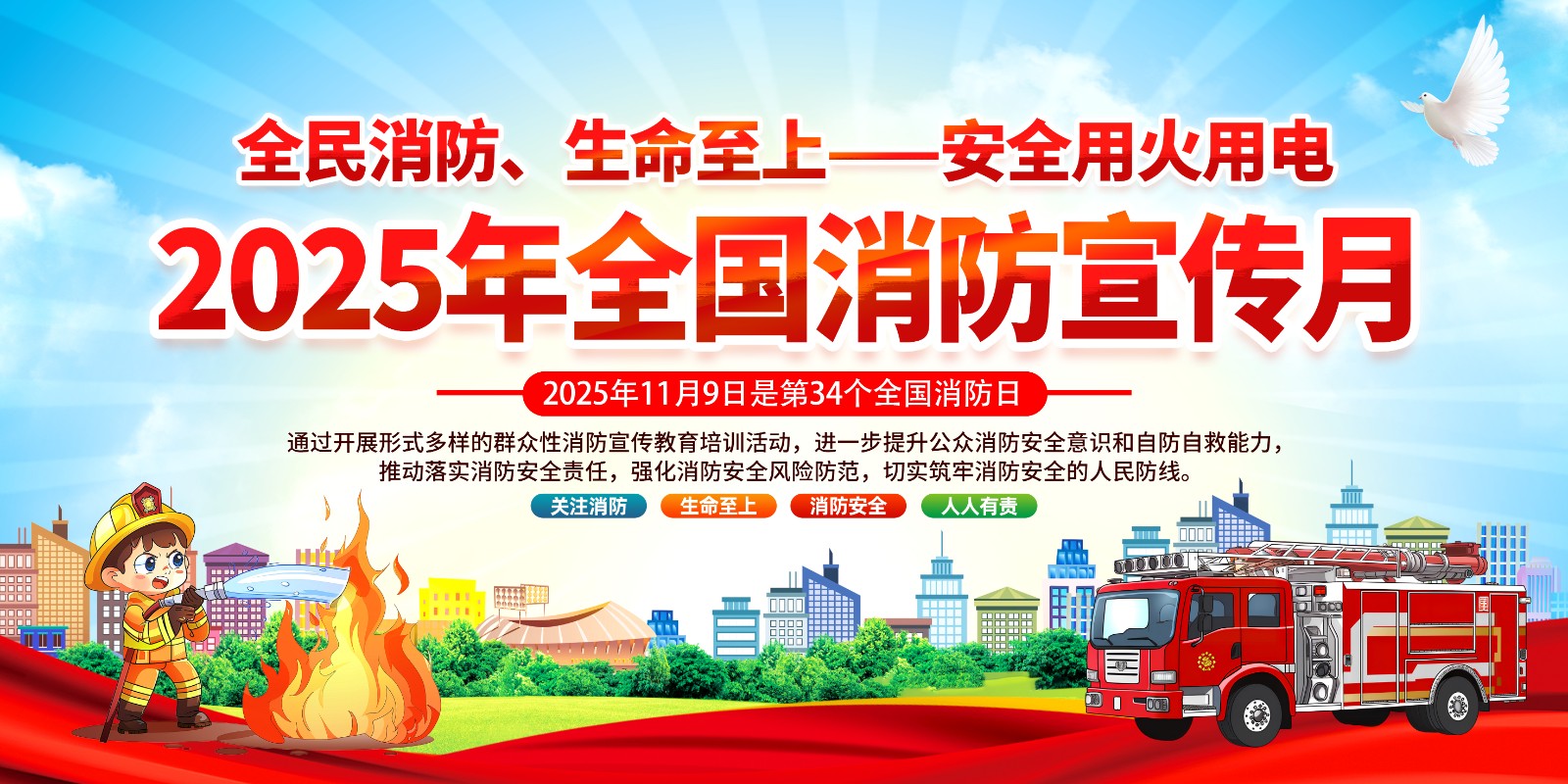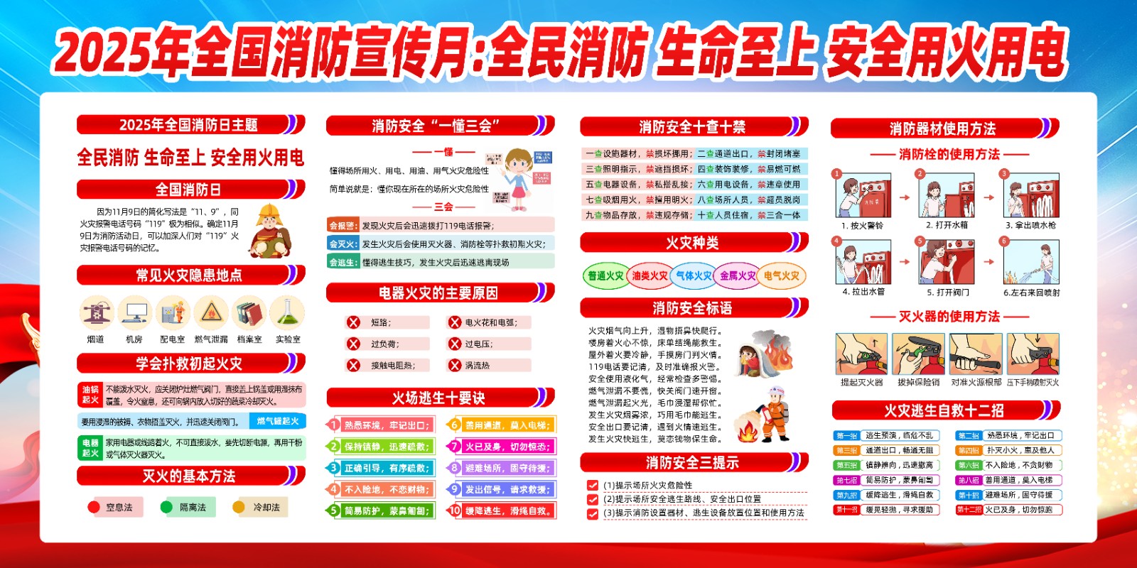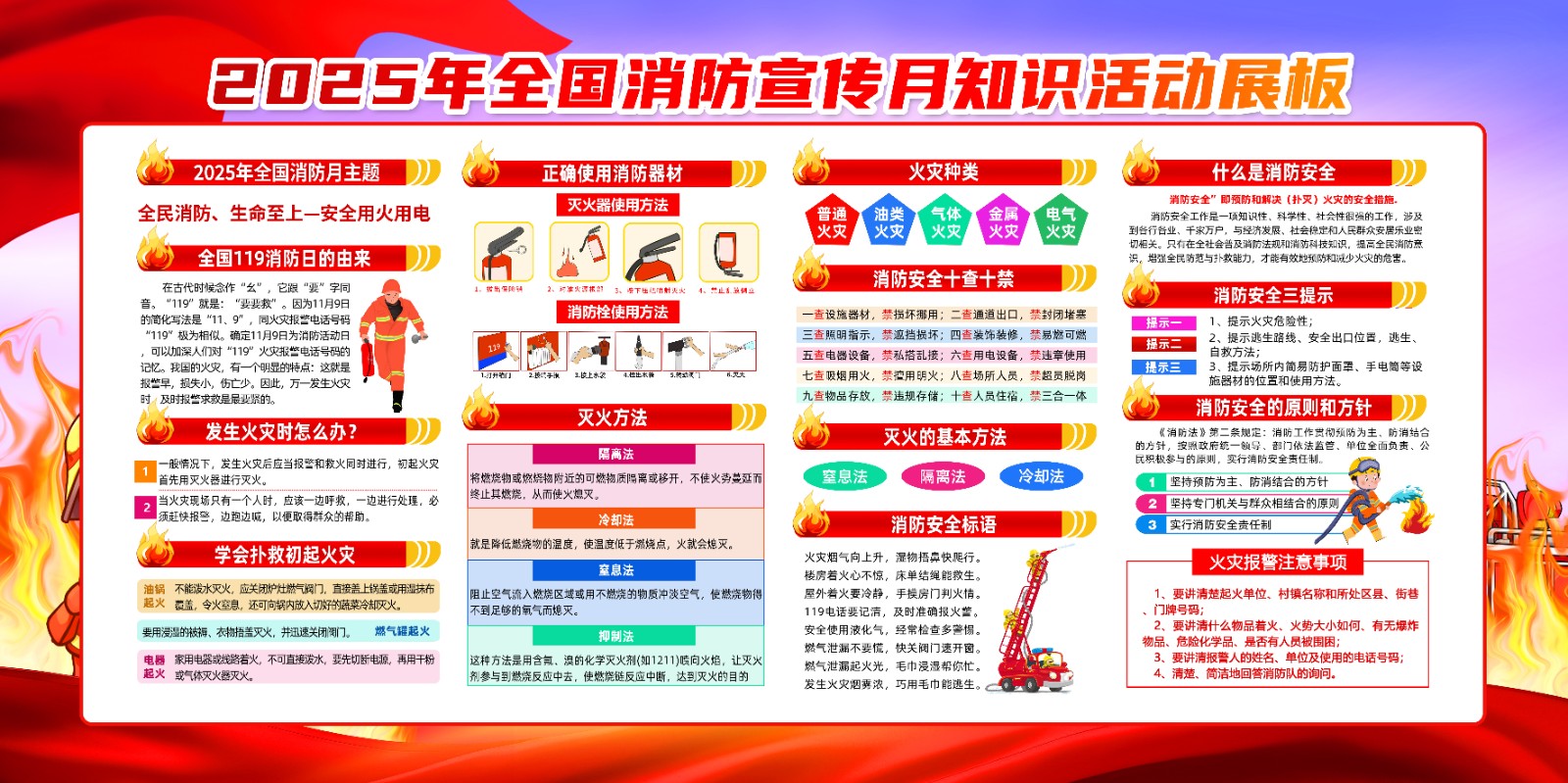 2025年消防宣传月主题海报119消防日教育海报 【高清图+PSD原版文件】